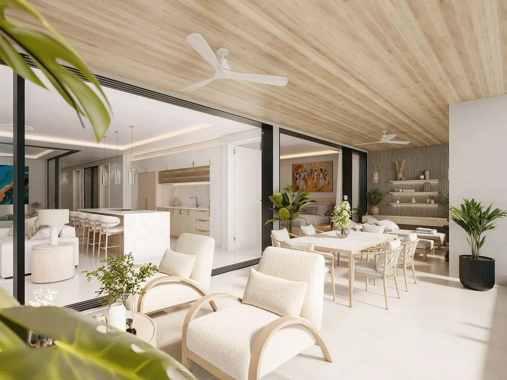 Type 1 – features sweeping sea views through floor-to-ceiling glass with an expansive open plan living area flowing to a private dining terrace, ideal for lounging and watching the sunset. All bedrooms are en suite, with the primary suite enjoying direct ocean views.