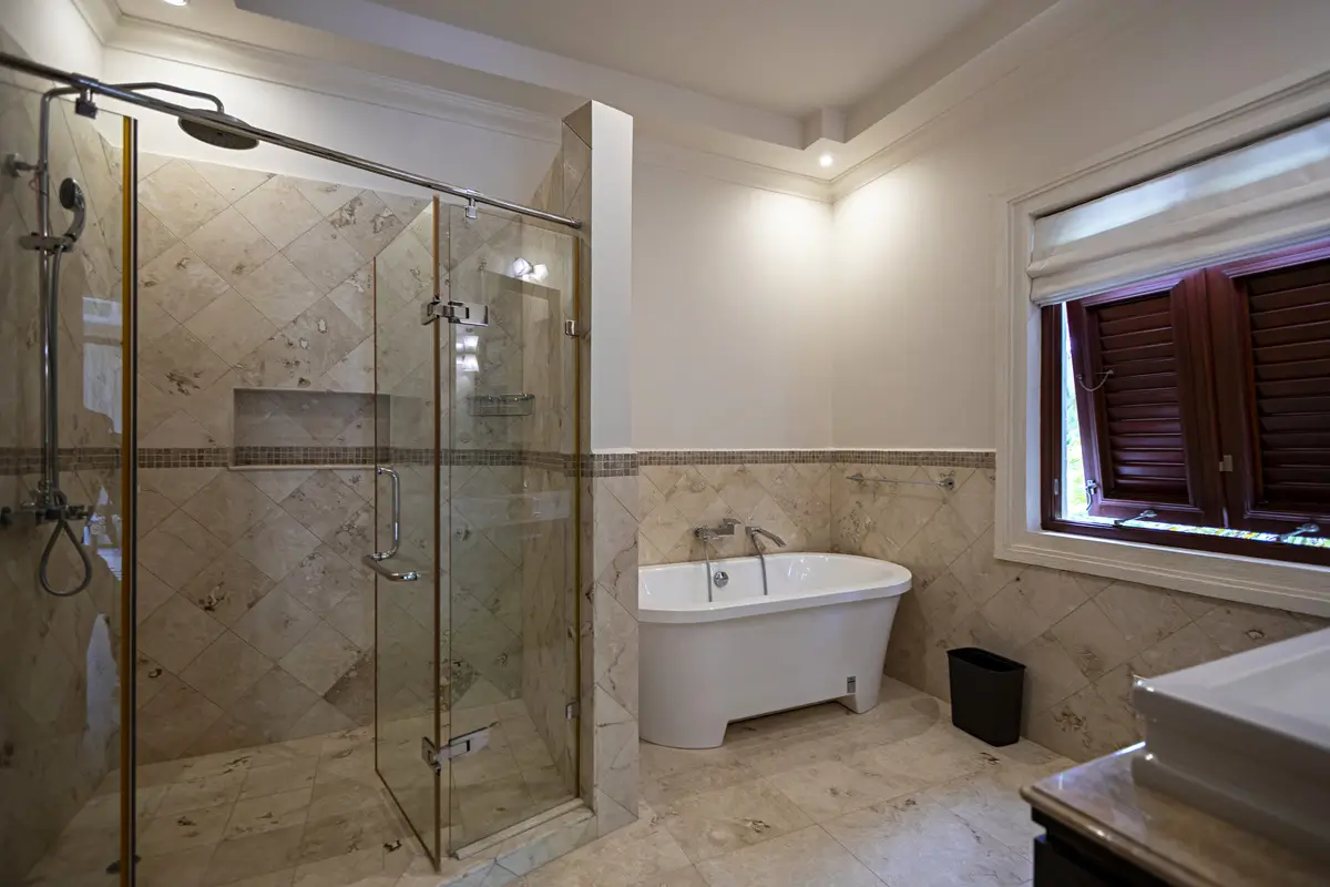 Villa 7 is spread over two levels of living space on 3,100 sq. ft. The ground floor has a spacious, flowing open plan design with a third en-suite bedroom, kitchen, ample living, and entertainment space, leading into an intimate, covered seated terrace and directly to outside dining, all tucked amongst dense tropical gardens with a traditional 6ft Swedish hot tub.