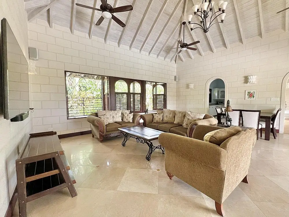 Harbour View St. James, Barbados, is a stunning open-plan villa with 4 bedrooms and 4.5 bathrooms on the gorgeous Lioncastle Polo Estate. A five-minute drive to Holetown and only 15 minutes to Grantley Adams International Airport. Nestled away on the highest point in the estate, from the hustle and bustle and close to a few local attractions like Welchman Hall Gully, Harrisons Cave and the Flower Forest.
