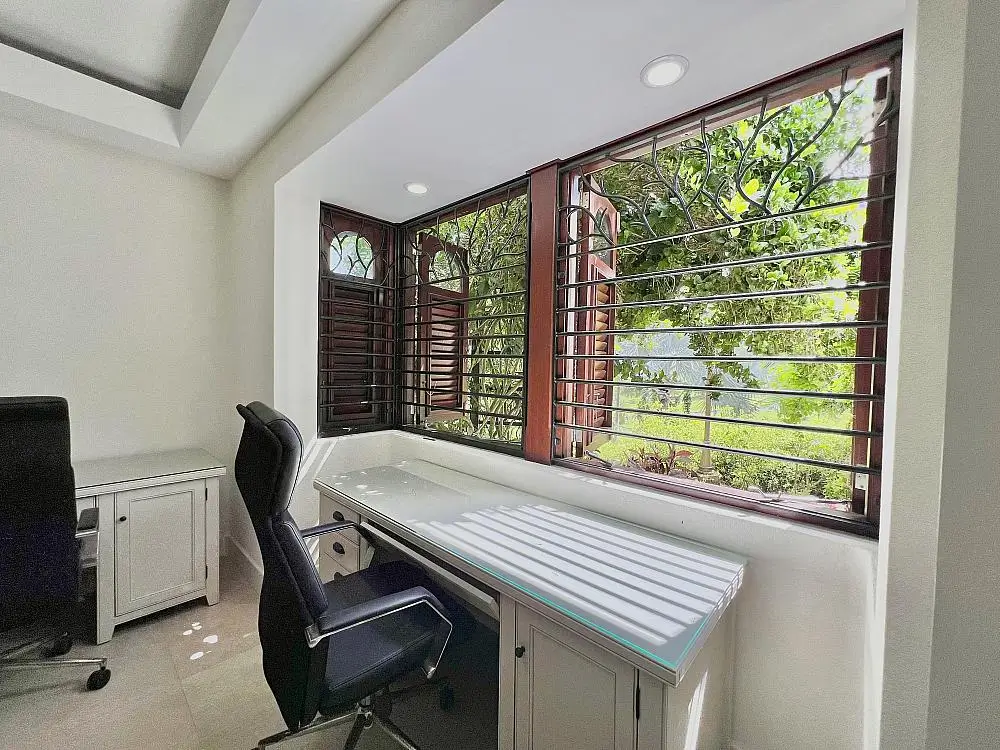 The living area is completely open plan with 4 large windows that have a garden accent - you could make this a pond also if that’s something you fancy! The windows open up the space to create a bright and vibrant space to enjoy that sweet island breeze.