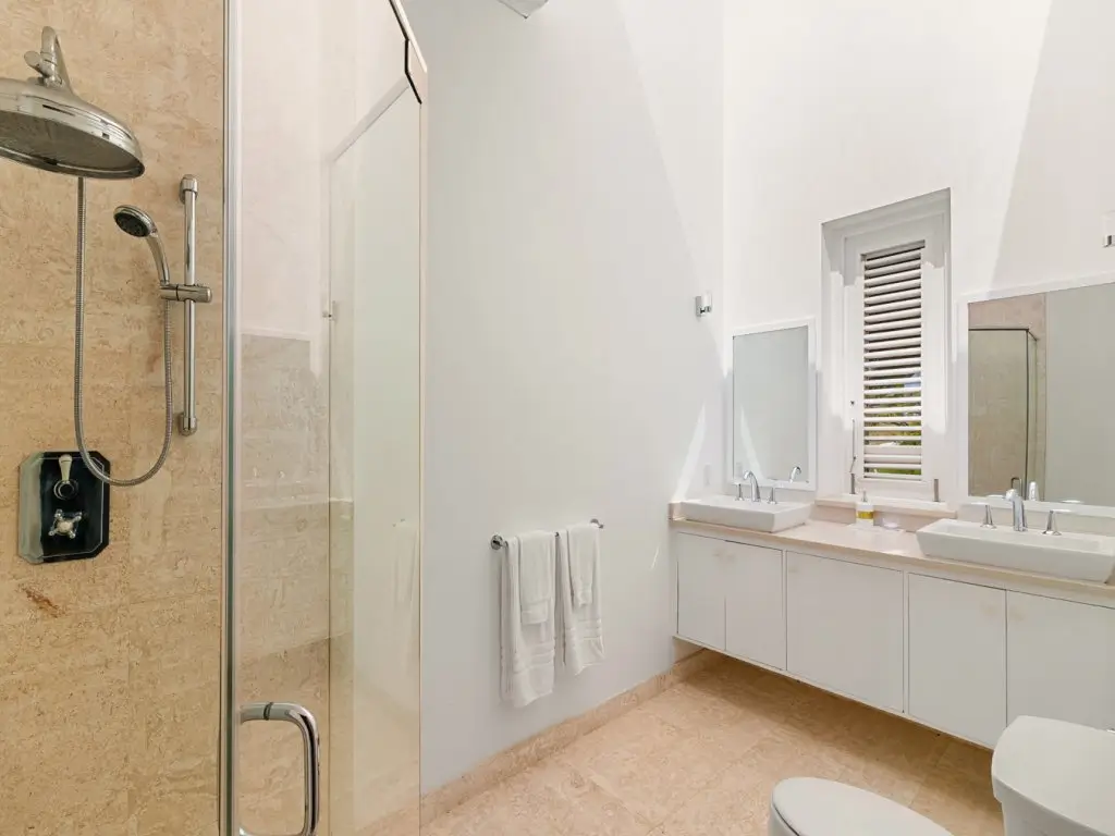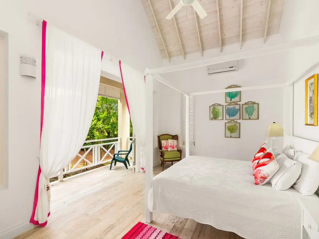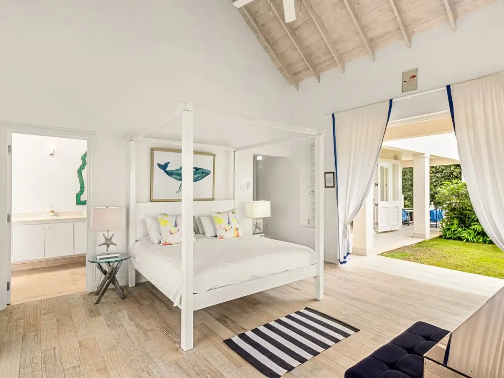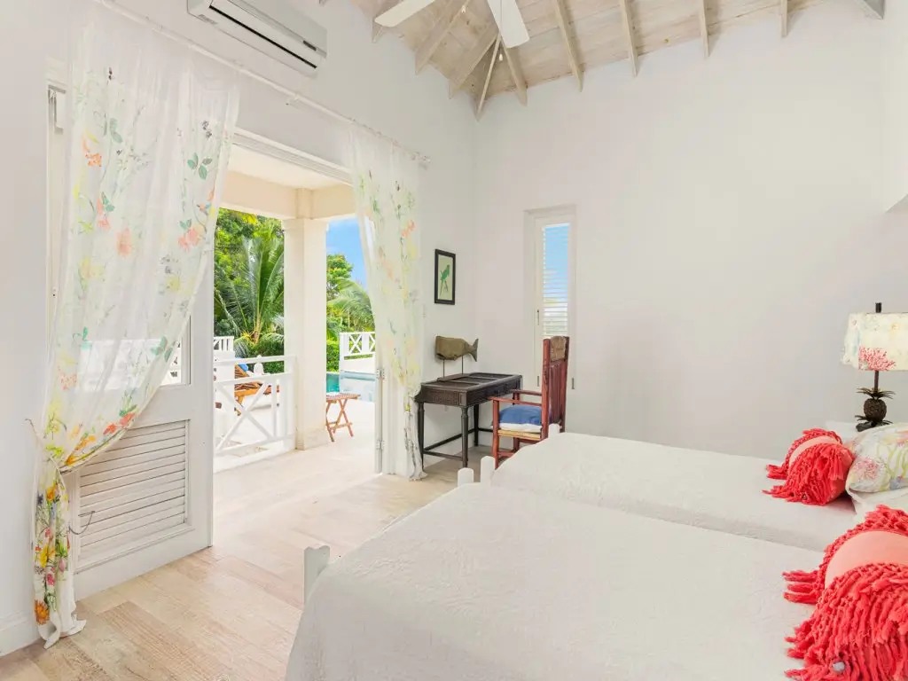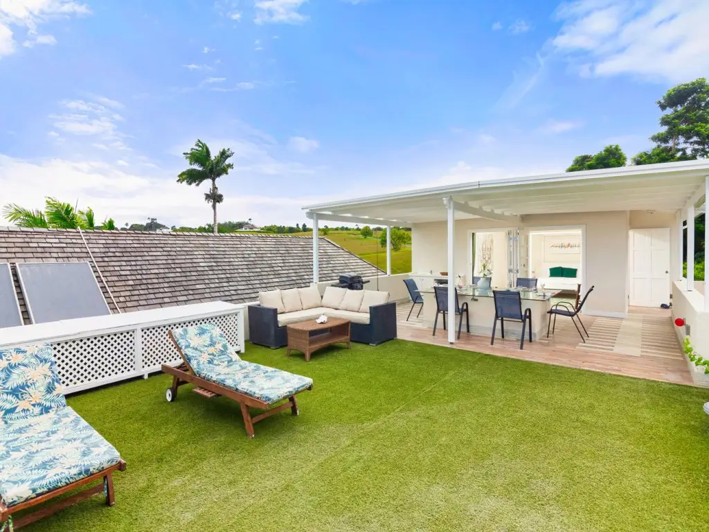 All 5 bedrooms are en-suite with large bathrooms. Four of the bedrooms are located on the ground floor, while the 5th bedroom is located on the roof deck. Constructed in 2022, this 5th bedroom is the newest addition to Palm Sanctuary. This incredible roof deck bedroom has its own superb entertaining area with a jacuzzi and stunning views over the Apes Hill Golf course and out to the Caribbean Sea.