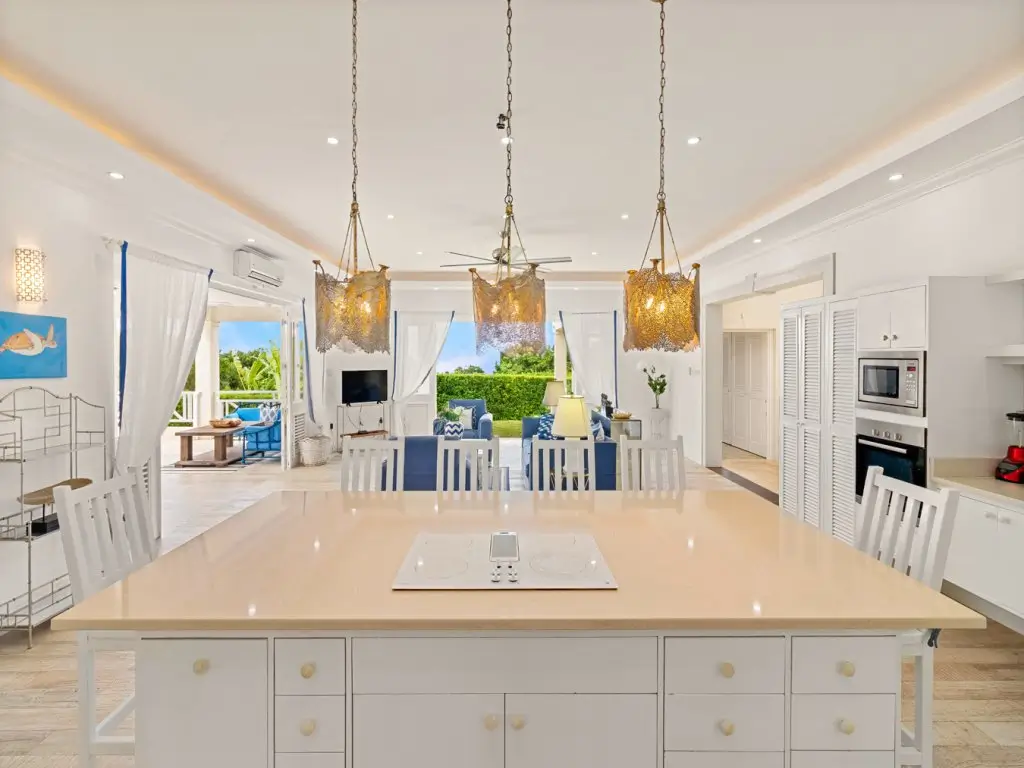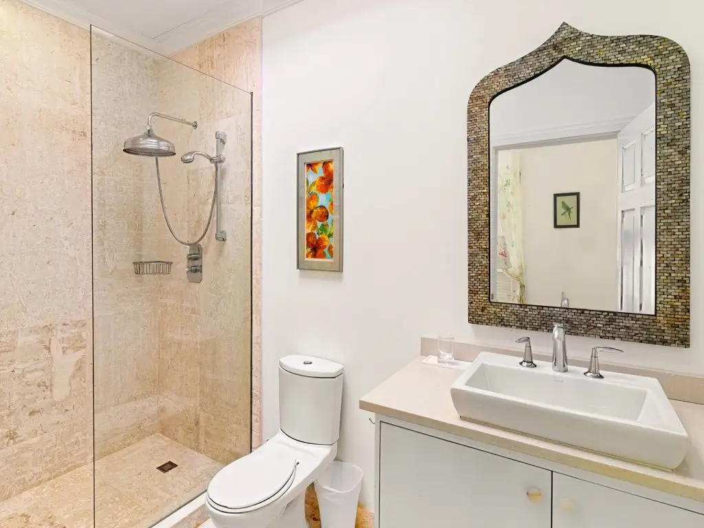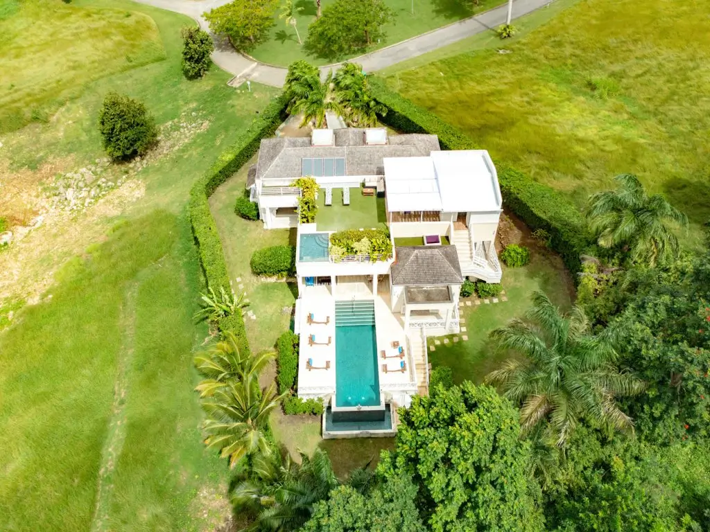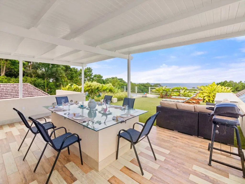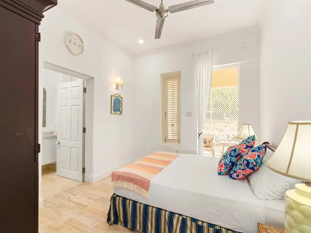 All 5 bedrooms are en-suite with large bathrooms. Four of the bedrooms are located on the ground floor, while the 5th bedroom is located on the roof deck. Constructed in 2022, this 5th bedroom is the newest addition to Palm Sanctuary. This incredible roof deck bedroom has its own superb entertaining area with a jacuzzi and stunning views over the Apes Hill Golf course and out to the Caribbean Sea.