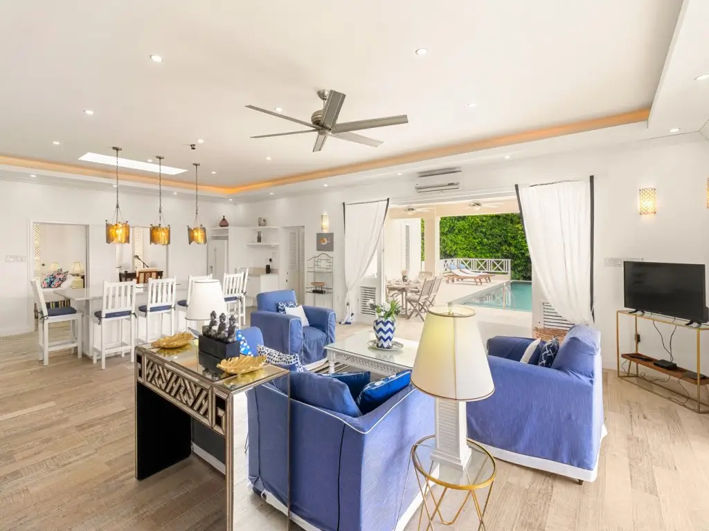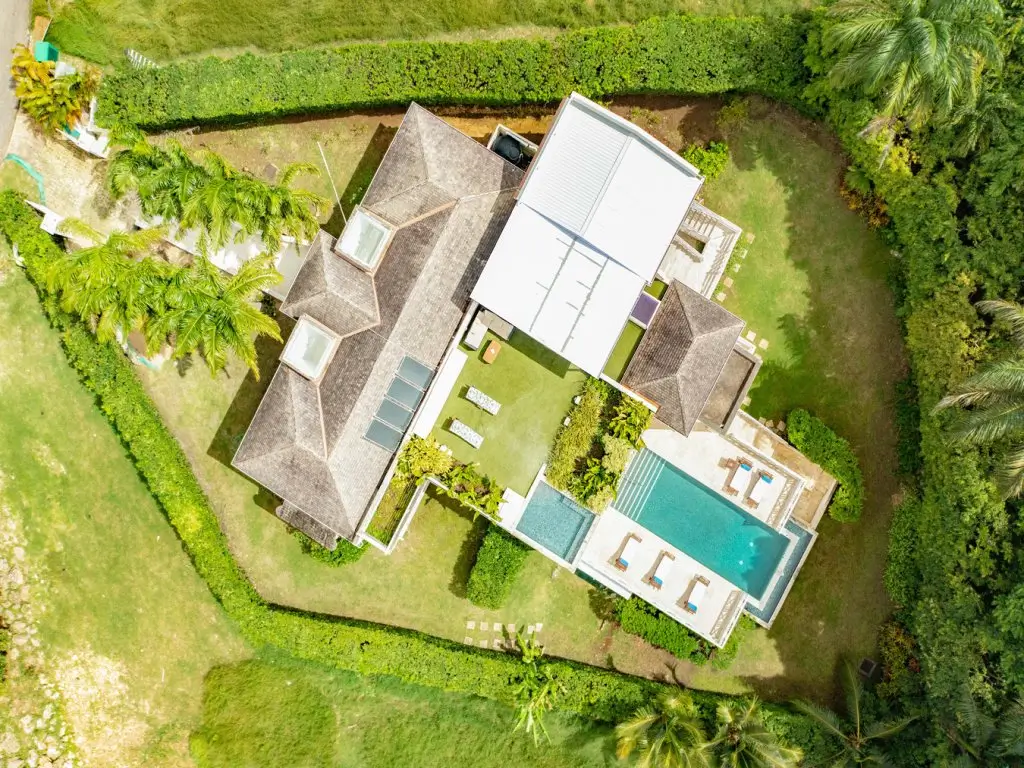 Palm Santuary, has a large free-flowing rooms and an open-plan modern kitchen, this villa also has a luxurious outdoor living space comprised of tropical gardens, a covered terrace with an alfresco dining area and a 40-foot lap pool with sundeck.