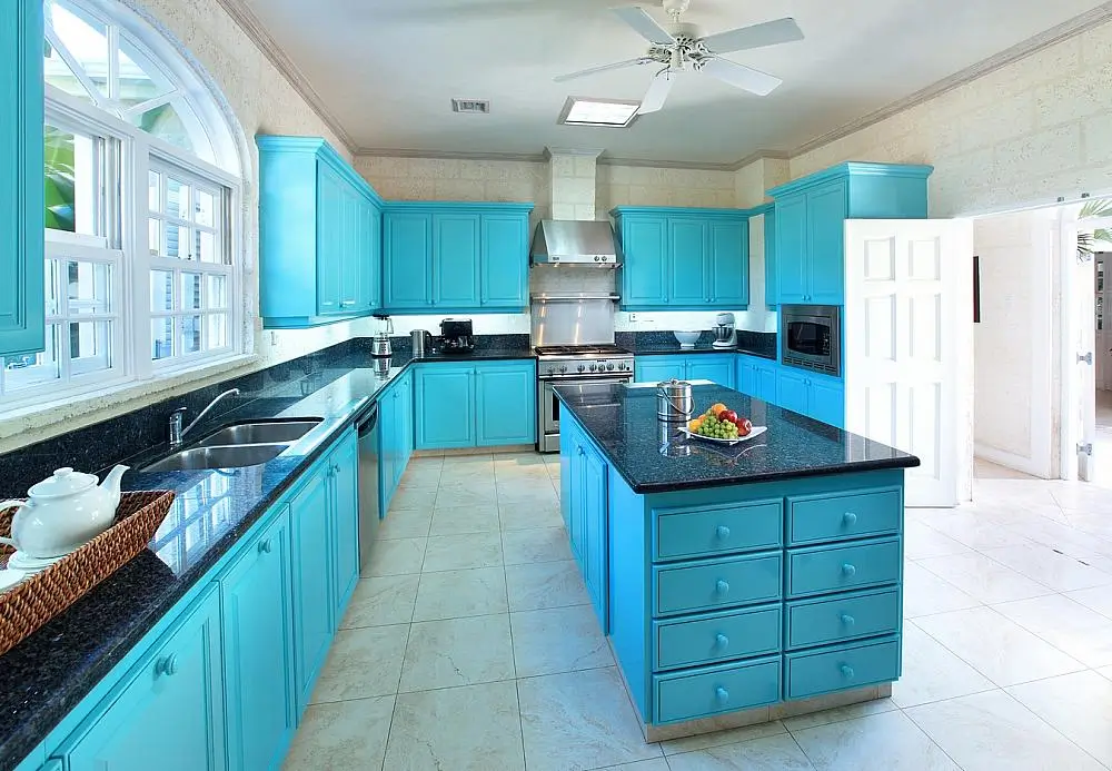 The large indoor living room features oversized comfortable sofas and French doors that open out onto a covered terrace with outdoor seating and an informal dining area. The laid-back media room, adjacent to the living room, features a wide screen HDTV, cable and DVD and also opens out to the pool deck. Inside, the elegant dining room features a large coral stone table where everyone can gather for meals together. Each of the five air-conditioned en-suite bedrooms offers a peaceful retreat, while a laid-back media room, flat-screen TVs, cable, and DVD/video options provide all the entertainment comforts of home.