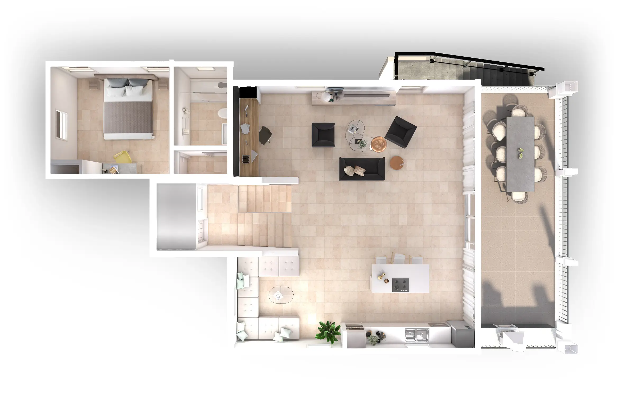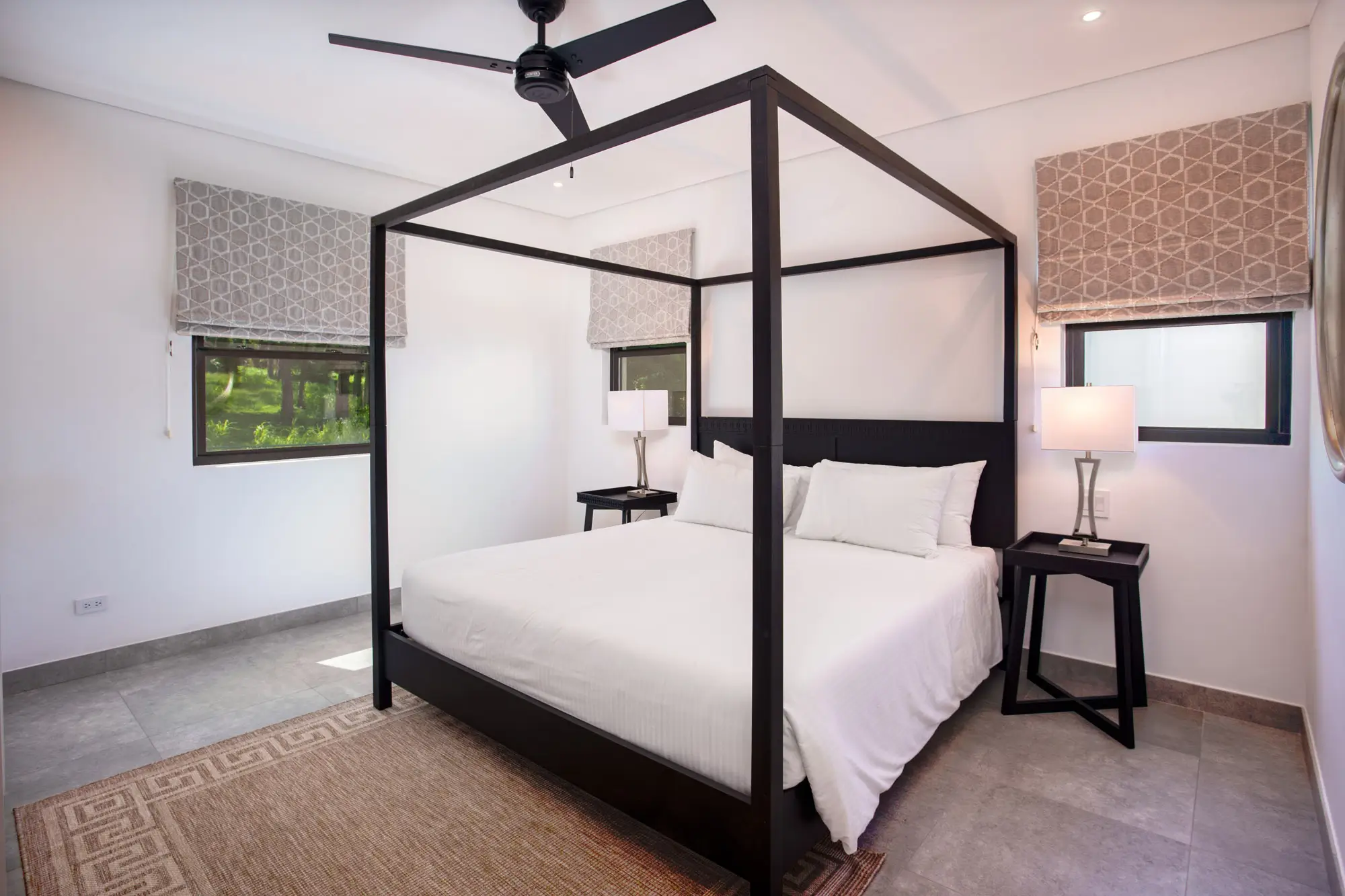This property has four beautiful en-suite bedrooms, one on the mezzanine and three on the ground floor. All sumptuously decorated, the main suite treats its guests to the additional luxuries of a walk-in wardrobe, an en-suite bathroom, and direct access to the pool deck via large patio doors.