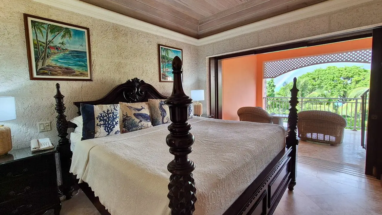 This elegantly crafted one-bedroom penthouse features a rooftop retreat with a private pool, sunloungers, and stunning tropical garden views, perfect for relaxation. Inside, the penthouse is elegantly crafted with artisan mahogany furnishings and Crane coral stone finishes. A spacious balcony enhances the lush garden views, while the suite includes a king bed, oversized plush sofa, a fully-equipped granite kitchen, and a private marble bathroom with double vanity.
