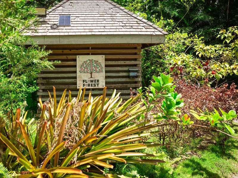 The 50-acre (200,000 m2) property was formerly a sugar plantation, Richmond Plantation. Richmond Plantation was redeveloped in the 1980s to become a botanical and tourism resource. The gardens were purchased from the founding shareholders in 2009 and continue to be a sustainable agricultural development. In 2019, Flower Forest employed 4 full-time gardeners and 2 pavilion staff members. It is the largest garden in Barbados. There is a Pavilion which acts as the reception area, restaurant and souvenir shop.