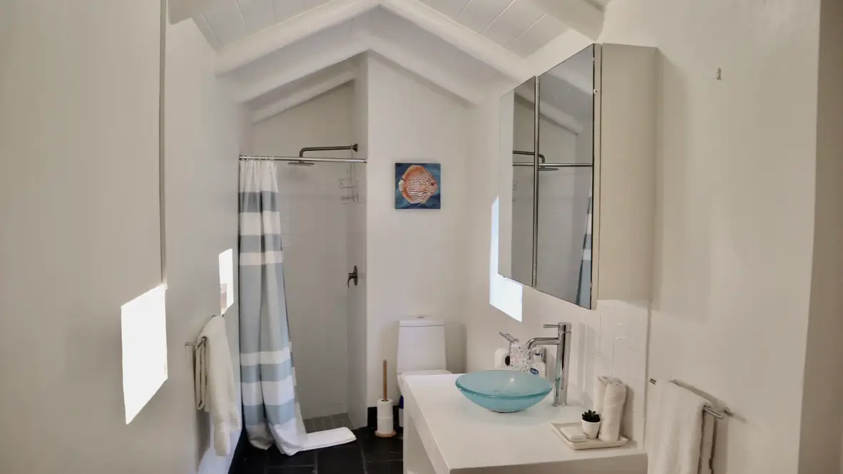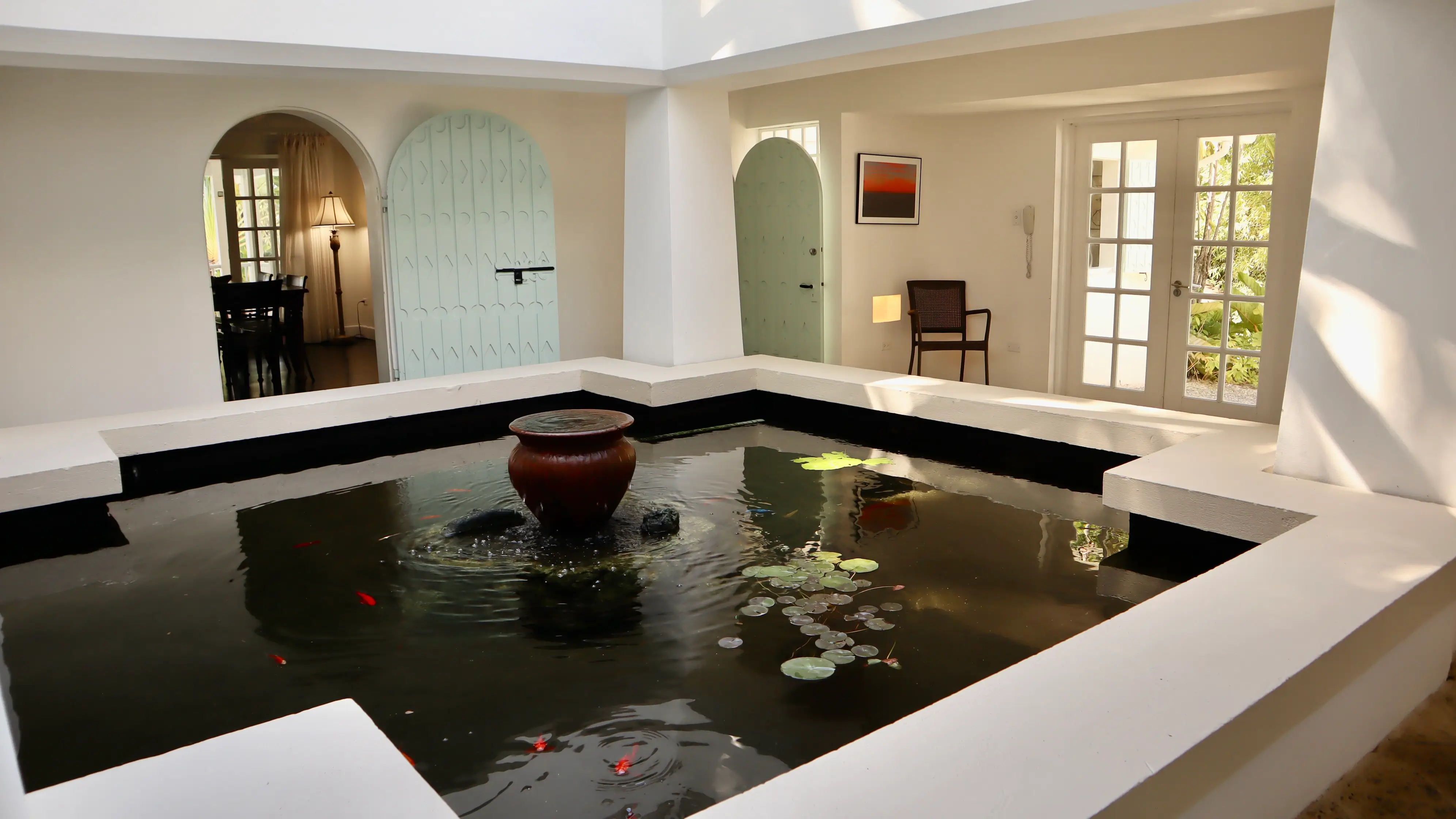 The centerpiece of the home is an open water courtyard, creating a serene and inviting atmosphere. The main house features three bedrooms, each with an en-suite bathroom. These rooms are arranged around the central courtyard, ensuring privacy while fostering a sense of community whilst enjoying the prevailing weather from the wind to the mid-day sun, the house is brilliantly designed.