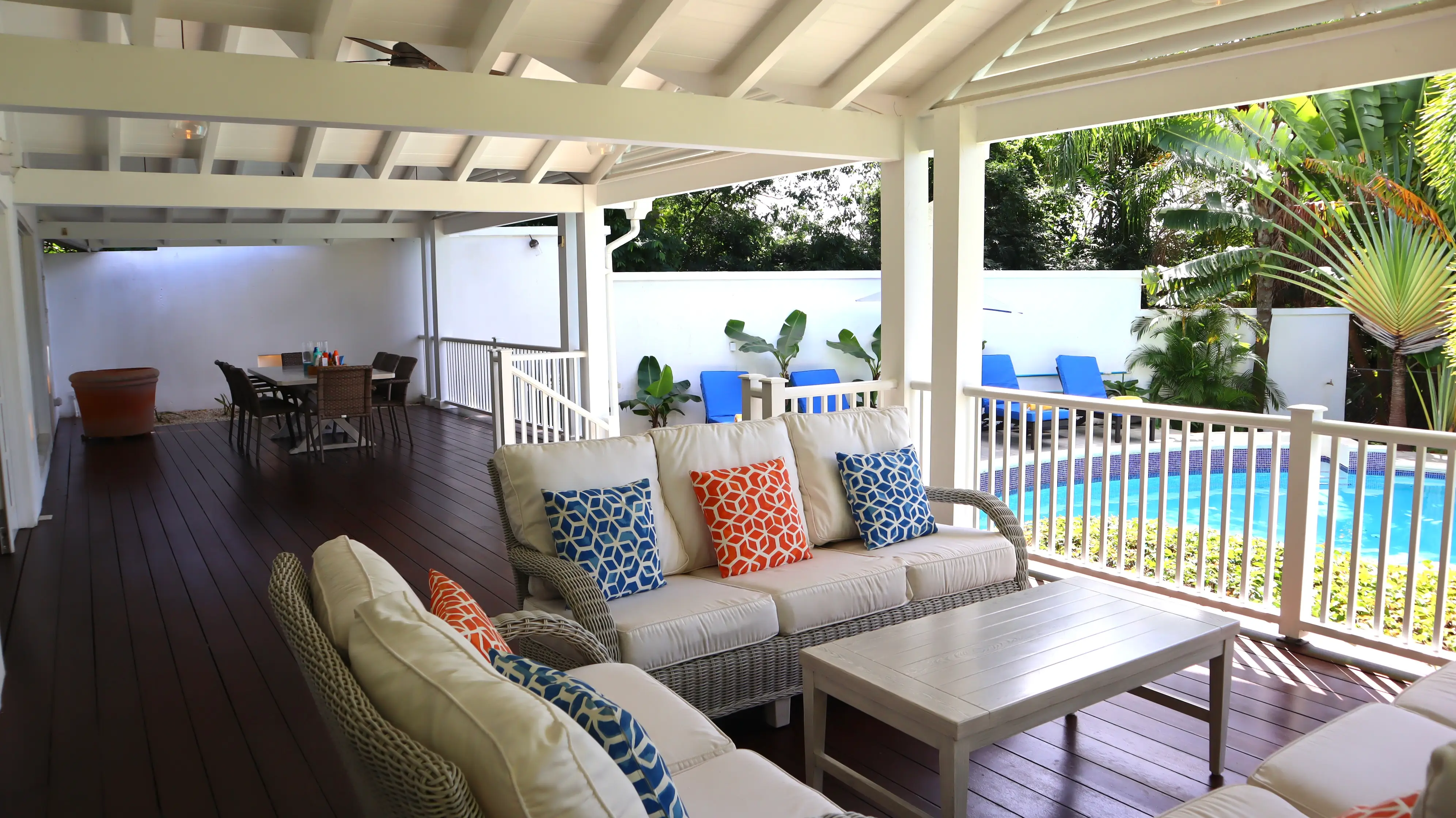 The spacious lounge, large covered terrace, and open pool deck provide perfect spaces for relaxation and entertaining.