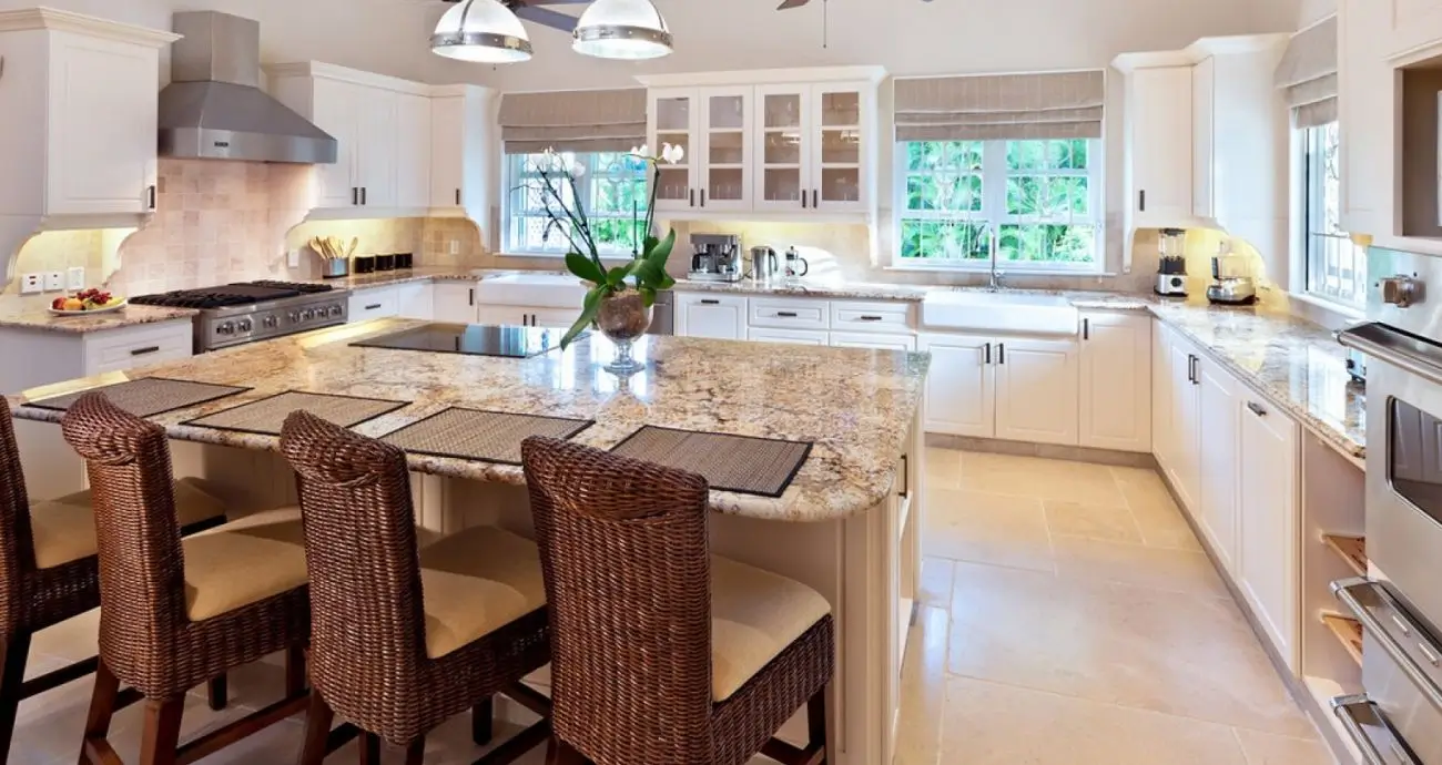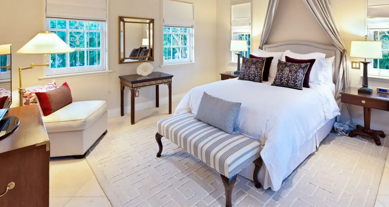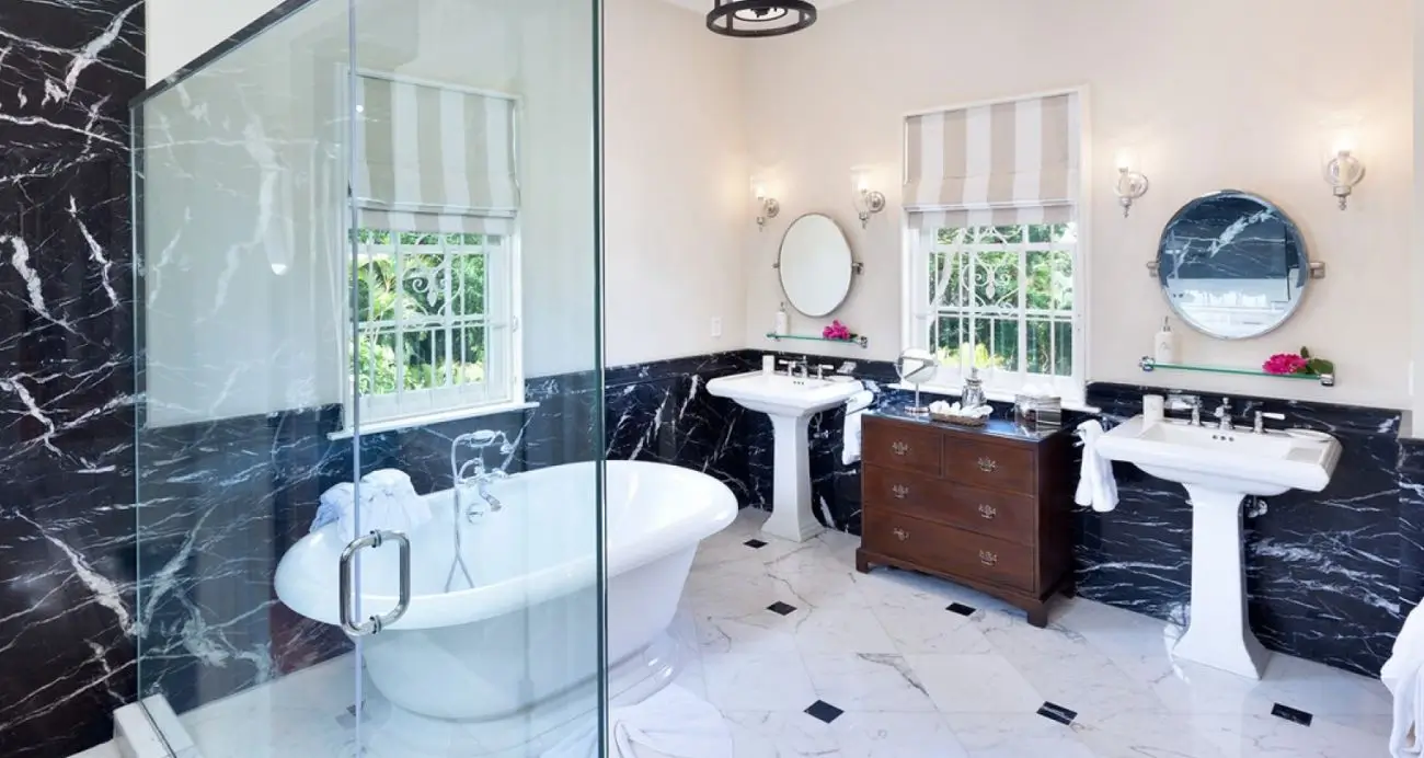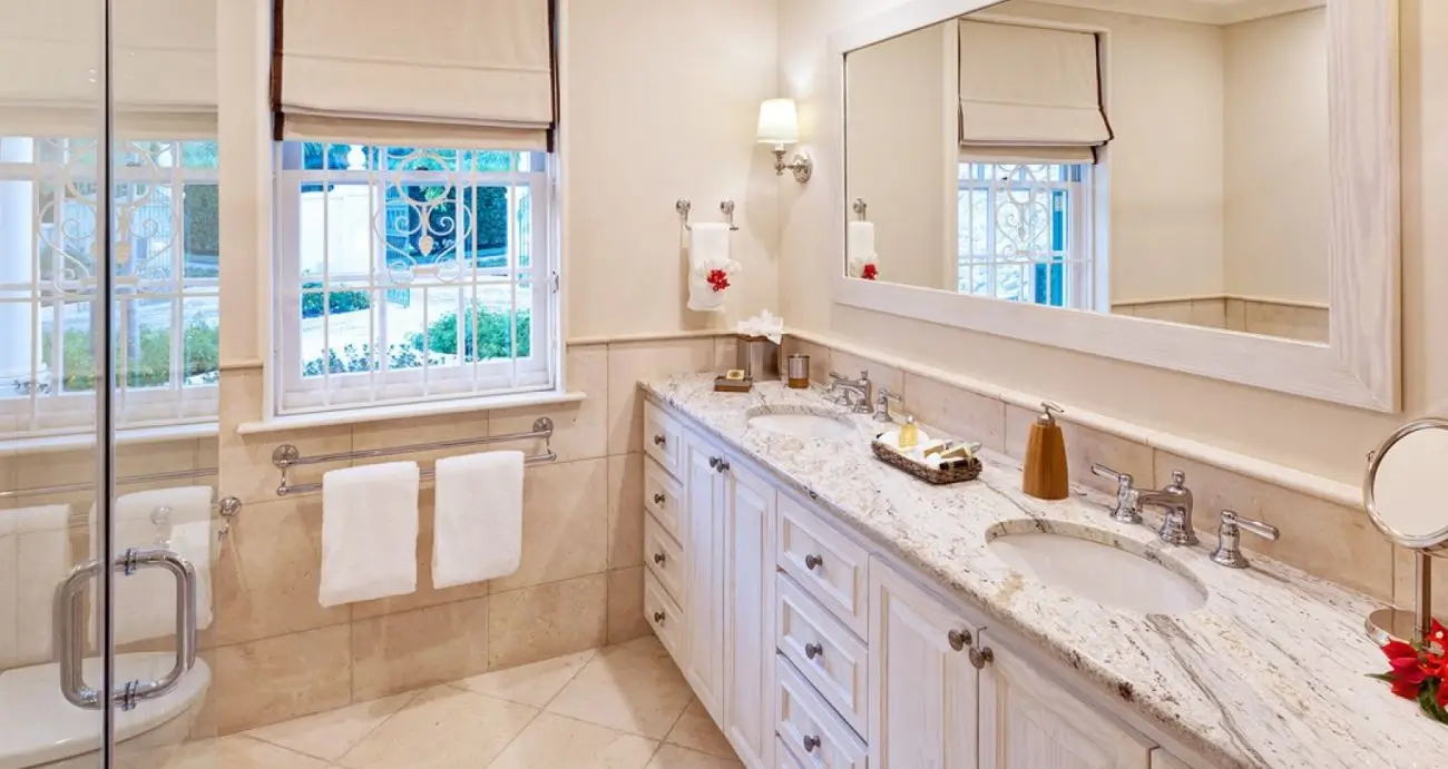 This luxury Barbados rental has 5 impressive bedrooms. Each of which has been beautifully decorated and comes fully air conditioned with ceiling fans, safes and cable TV. Each of these stunning bedrooms is en-suite and features incredible marble bathrooms, double vanities and a large rain shower. The Master bedroom comes with a tub and a large rain shower.
